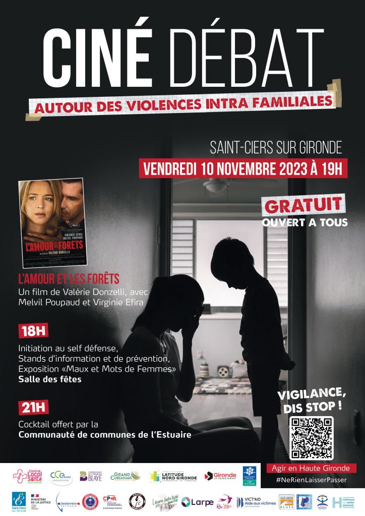 Suite à cette table-ronde, nous ouvrirons nos portes au grand public et nous vous inviterons à participer à un ciné-débat autour du film « L’amour et les forêts » (2023) de Valérie Donzelli. Ce film raconte l’histoire d’une femme cultivée et indépendante financièrement qui tombe petit à petit sous l’emprise de son mari violent. Le débat sera animé par Vict’Aid et le Centre Hospitalier de Blaye.
