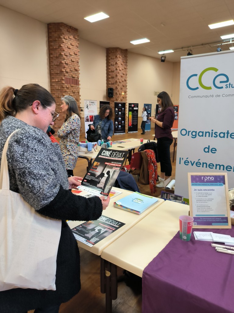 La salle des fêtes de Saint-Ciers-sur-Gironde a ouvert ses portes à 14h pour les professionnels du secteur. Des stands avaient été installés dans la salle des fêtes tenus par plusieurs structures qui oeuvrent dans la lutte et la prise en charge des violences intrafamiliales sur le territoire : Vict’Aid, l’ARPE, l’association Rêv’Elles, le Réseau Périnatalité de Nouvelle-Aquitaine et l’Unité Médico-Judiciaire de proximité de Libourne.