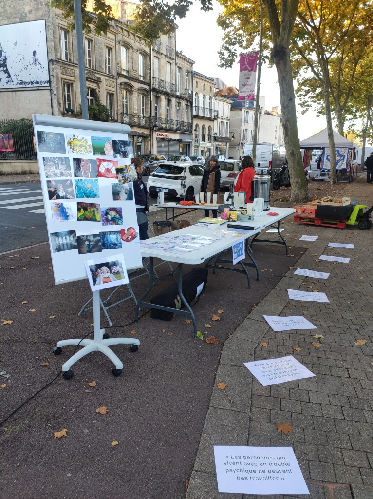 Afin d’aborder la santé mentale auprès du grand public, les partenaires du CLS (Argos 2001, AMSAD Haute-Gironde, GEM En Parallèle, 3114, Grand Cubzaguais Communauté de Communes et l’hôpital de jour Les Magnolias) ont organisé un porteur de paroles sur les marchés de Blaye et Saint André de Cubzac les 8 et 9 octobre derniers.