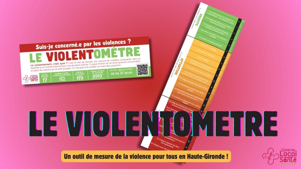 Le violentomètre est outil de mesure de la relation chez les personnes en couple. Grâce à son échelle de couleur, il permet d’identifier rapidement si la relation est saine, inquiétante ou dangereuse. Cette vidéo de présentation est volontairement sans son afin de la diffuser dans les lieux de passage, salles d’attente des cabinets médicaux, …